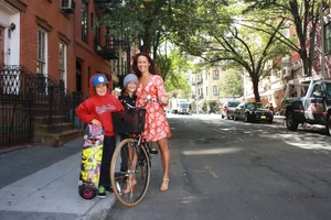 Lani Tarozzi, the route curator, pictured with her two sons who keep up with their mom by skateboarding alongside her.