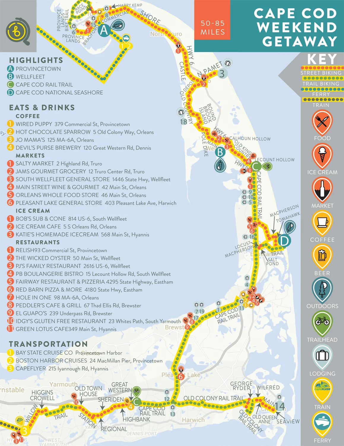 It's bliss to take in Boston's skyline from the ferry to Provincetown and then after a long weekend, roll your bike onto the CapeFlyer in Hyannis for a relaxing and scenic ride back to South Station.